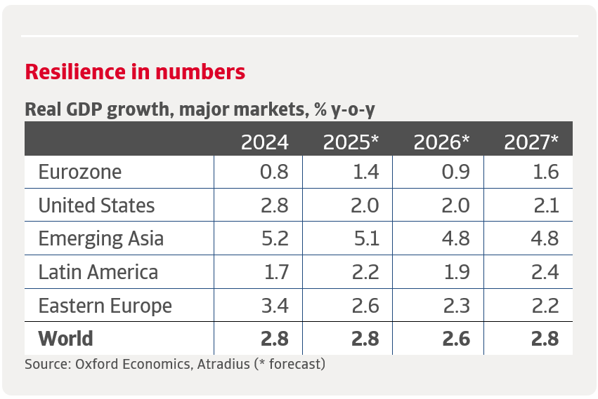 - Growth is set to moderate slightly in 2026, weighed down by advanced economies in particular. Emerging markets are more resilient but are still struggling with trade policy volatility and global financial uncertainty