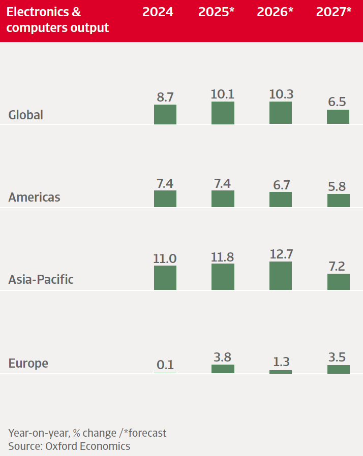 We expect electronics/ICT production to grow by 10.3% in 2026 and by 6.5% in 2027 after a 10.2% in 2025.