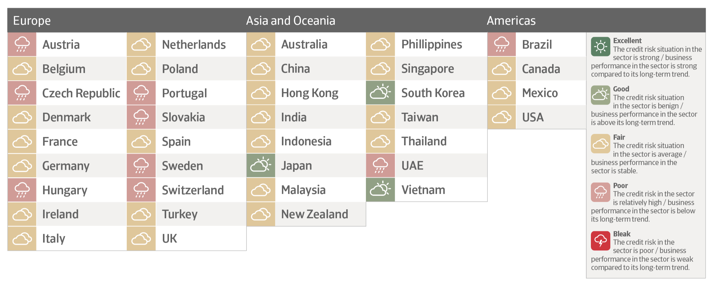 That said, the recovery of Germany’s economy remains slow for the time being. Demand from automotive as a key buyer industry is expected to decrease further. Deliveries to the US continue to suffer from high tariffs on the steel and aluminium components of machines, while competition from China is growing in many export markets. Therefore, we expect credit risk in the German machinery sector to remain elevated this year.